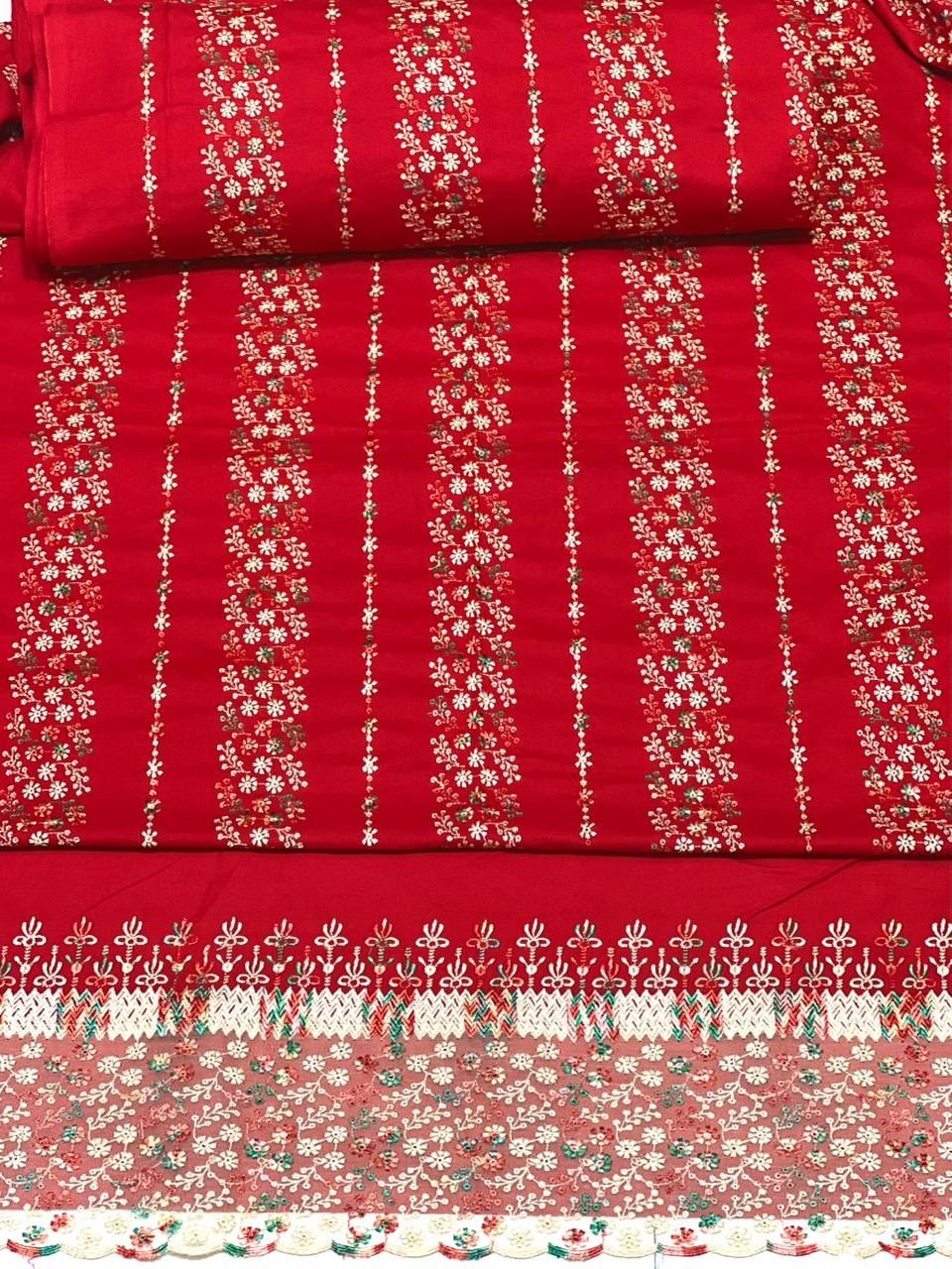 Dhanak All Over Embroidered Suit with Palachi Shawl – Multi Colors Available