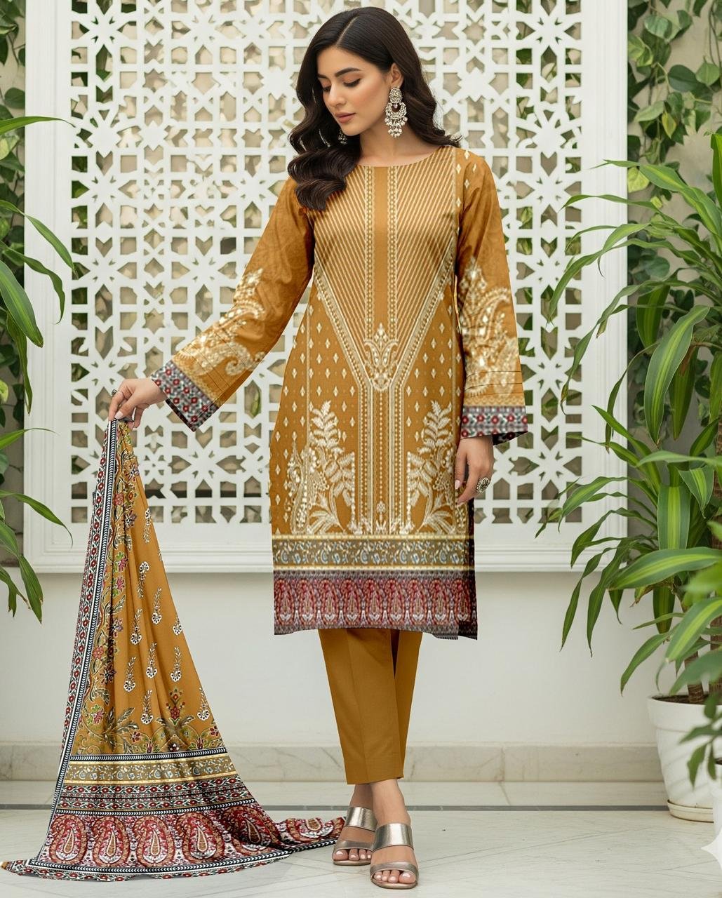 Imported Cotrai 3pc Suit with Pashmina Shawl